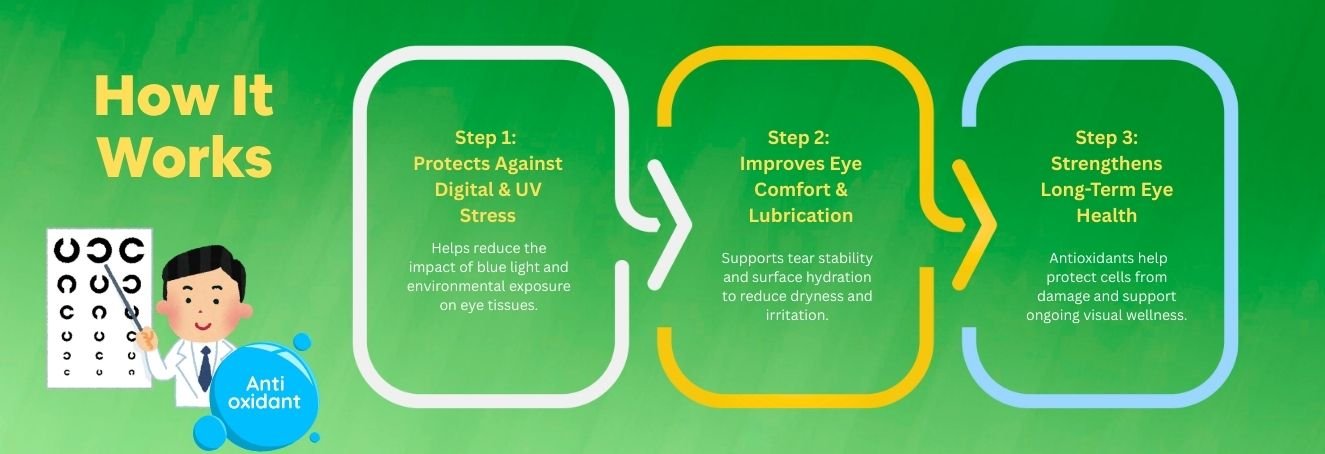 Screen work left my eyes strained. After a few weeks of NEOFIT Eye Care, dryness and irritation reduced. Not a dramatic change but a steady, noticeable improvement through the day