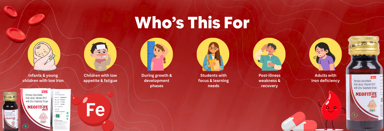 Healthy blood is the foundation of energy, immunity, and overall development. NEOFIT-FE Drops are designed to provide essential support for strong blood counts, active minds, and resilient bodies — safely, effectively, and with gentle care.